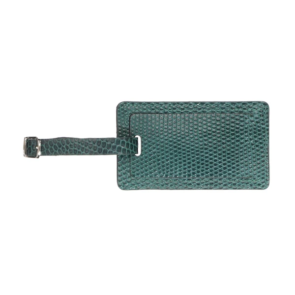 Crafted from genuine lizard, the exotic luggage tag is an elegant accessory that’ll set your travel bags apart. Open the information window slot and attach to any bag with an easy buckle closure.